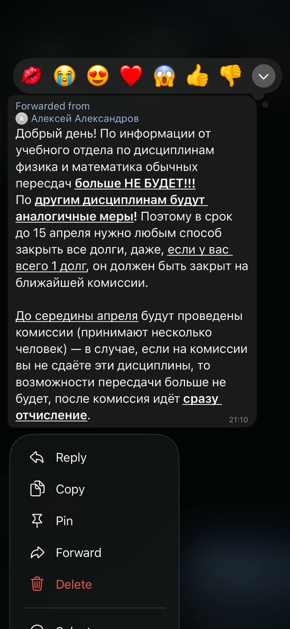 Скинули скрин, что поле 15 числа будет пересдача только с комиссией, если не сдаешь - отчисляют. Из долгов, физра, английский 3 сем и матан 2,3…. Матан еще более менее закрыть, физра тоже, но английский - жесть. Как думаете, может проще числануться?