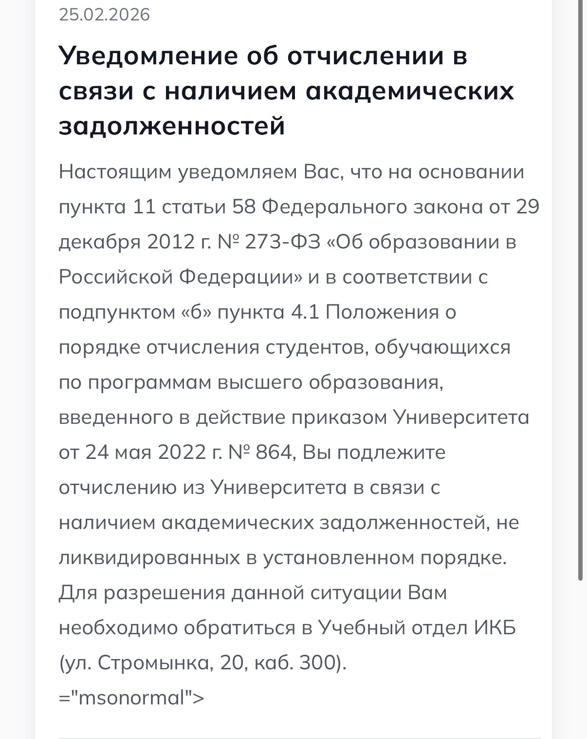 было и такое, что она приходила, человек не закрывал ни одного долга со своей ситуации, и его не отчисляли, сейчас вот обратное на выпускных курсах.